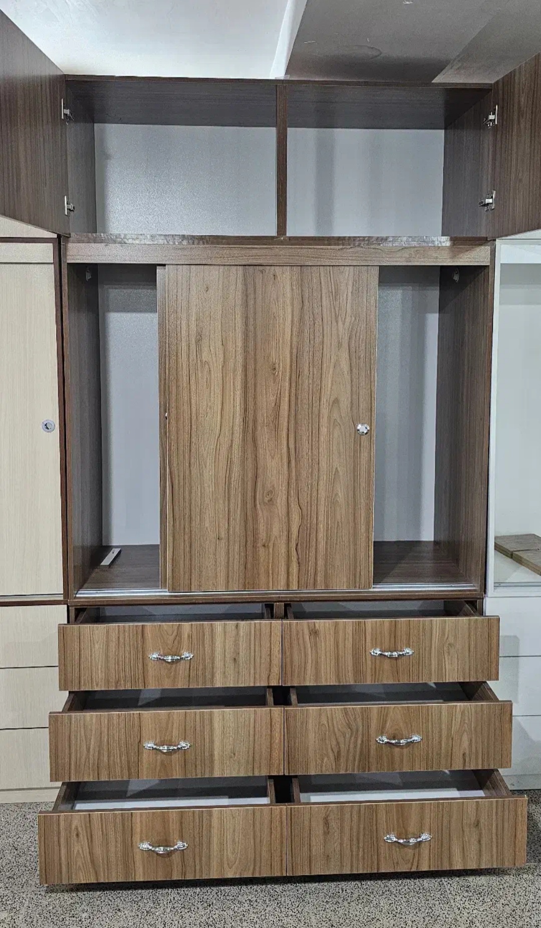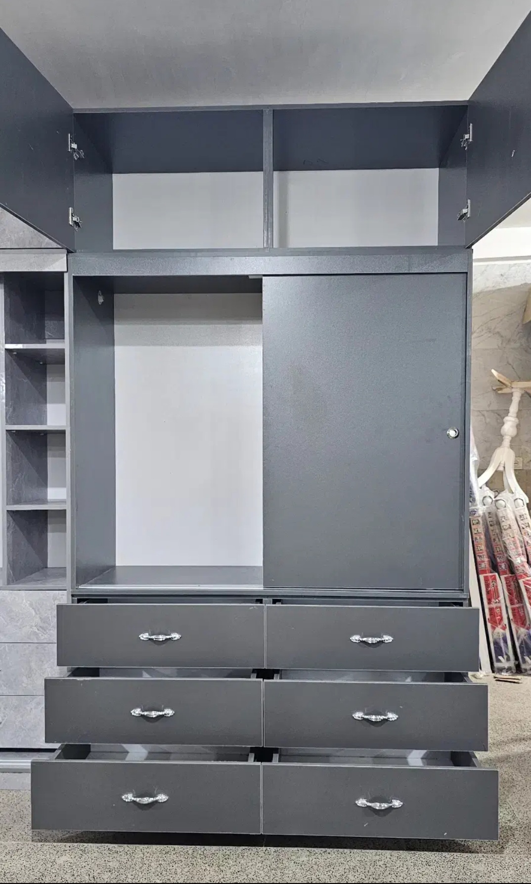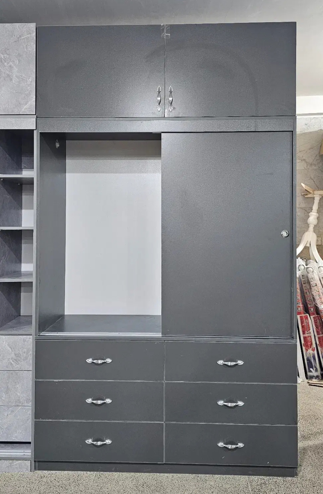 · با یک حرکت سبک، تمام عرض کمد در دسترس است و نیازی به باز و بسته کردن دربهای متوالی نیست.